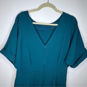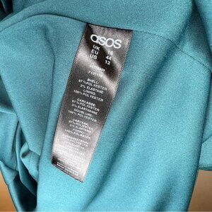 ASOS Teal Green Wiggle Midi Dress Size 12 Short Sleeves Front Slit