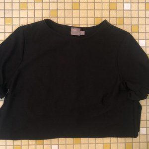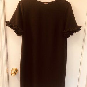 Super cute and versatile black dress. textured fabric is flattering and can be dressed up or worn with white sneakers for a dressy casual look.
