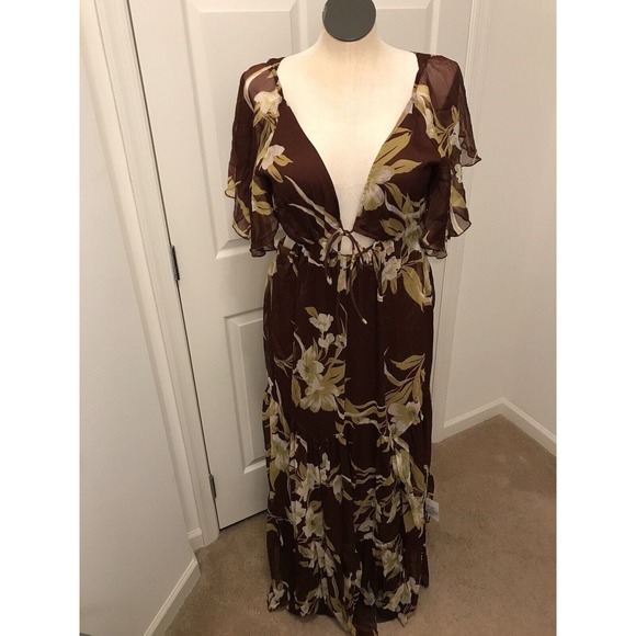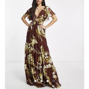 vacation, floral dress, tiered maxi, boho, bohemian, flutter sleeve, keyhole, plunge neckline, semi sheer, size 14 dress, feminine, dainty, sexy summer dress, sun dress, Open back, flowy, US 14, UK 18, EU 46, Asos Curve