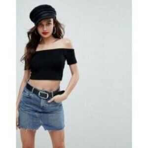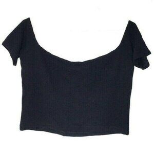 ASOS Top 14 Womens Cropped Black Off Shoulder Stretch Textured V Neck Date Night