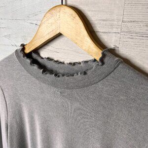 ASOS Top Girls Size 12 Gray and White Tiny Ribbed Scallop Crinkle Hem Cropped