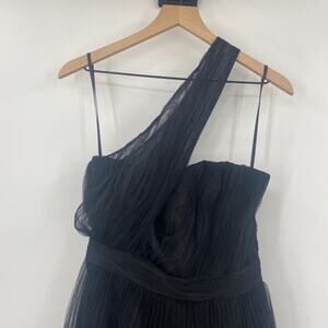 ASOS Tulle Draped One Shoulder Gown Wired Hem Maxi Dress Black NEW Womens 6 Tall