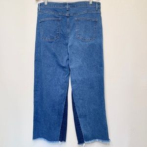 ASOS Trendy Two Toned Blue Wash High Rise Classic 5 Pocket Zip Fly Single Button Closure Raw Hem Ankle Crop Stretchy Wide Leg Gaucho Jeans