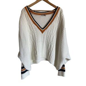ASOS US Size 24 Cream Ivory Cable Knit V-Neck Pullover Sweater College Academia