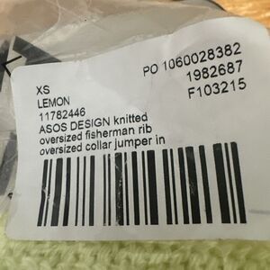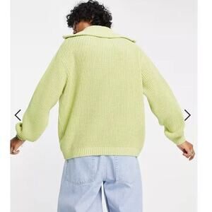 ASOS Unisex Oversized Neon Lemon Fisherman Rib Sweater Big Collar Size XS NEW