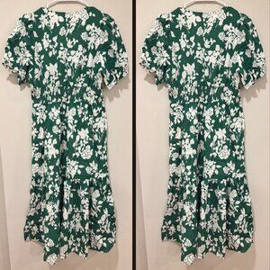 ASOS Urban Revivo Floral Print Midi Dress with Peplum Hem Green Size Large