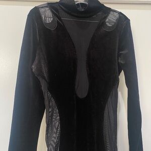 Asos black mesh and velvet long sleeve jumpsuit. Such a cute holiday look. I had to previously stitch up a hole near the back zipper. Other than that, no flaws!