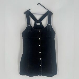 ASOS Washed Black Denim Button Down Front Button Straps Mini Dress