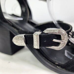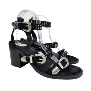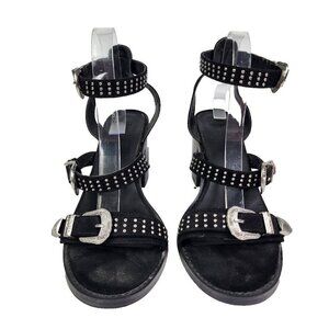 ASOS Western Studded Open Toe Strappy Chunky Heels Womens Size 7 Black Silver