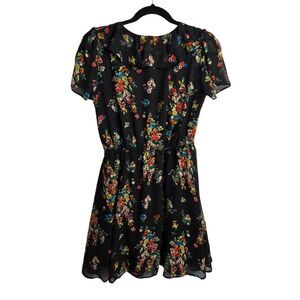 ASOS Whimsigoth Dark Floral Faux Wrap Mini Dress Romantic Feminine Fairy Sz US 6