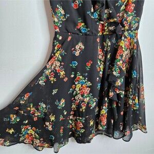 Tags: trendy, trending, floral, whimsigoth, chiffon, ruffle, semi sheer, lined, faux wrap, 90's Inspired, feminine, girly, romantic, dark, Y2K, coquette, going out, cocktail, happy hour, wedding, special occasion, vacation, summer, spring, fall, fairy