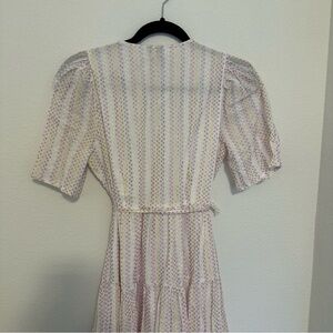 ASOS White Pastel Textured Dots V Neck Wrap Dress Midi Length Size XS Women’s