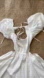 Chic mini dress with puff sleeves. Open back with tie details. Perfect for a stylish look.