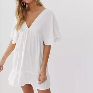 ASOS White V-Neck V-Back Ruffle Hem Oversized Mini Dress