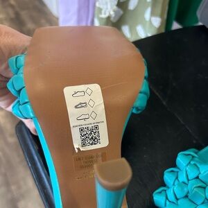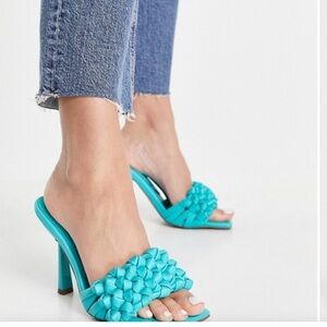 ASOS Wide Fit Nuno knotted high heeled slip on mules in blue size 9 NWT