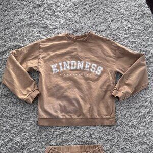 Spread good vibes in style with this cozy ASOS cotton tracksuit! Featuring a long-sleeve sweatshirt and matching jogger pants with ‘Kindness & Positivity’ print, this set is perfect for lounging, running errands, travel or casual outings. Very good condition!
