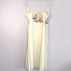 ASOS Women Cream Embroidered Pleated Cami Wrap Midi Dress Size 6