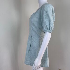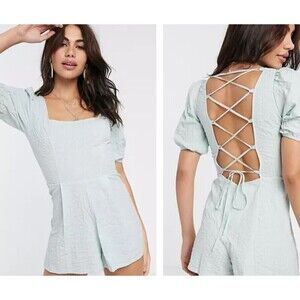 ASOS Women Size 8 Seersucker Mint Puff Sleeve Cotton Corset Lace Up NEW Romper