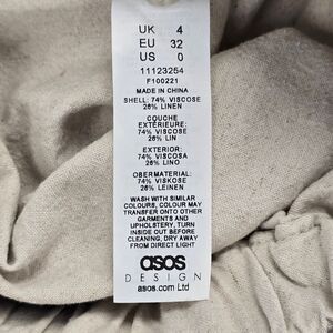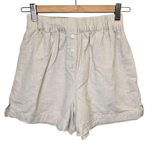 ASOS Women's 0 High Waist Cream Linen Blend Shorts with Elastic Waistband