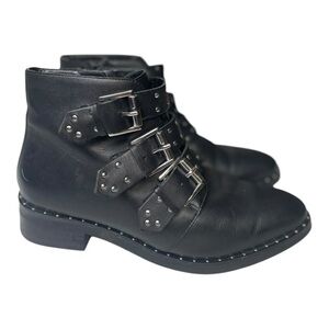 ASOS Women’s Asher Studded Black Leather Buckle Ankle Boots