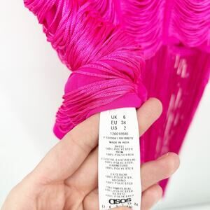 ASOS Womens Barbiecore Party Dance Fringe Shift Midi Statement Dress in Hot Pink. Size 2.