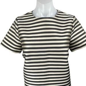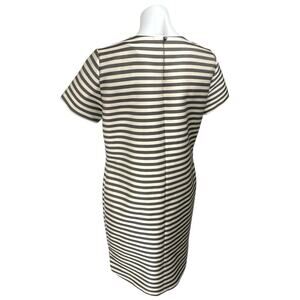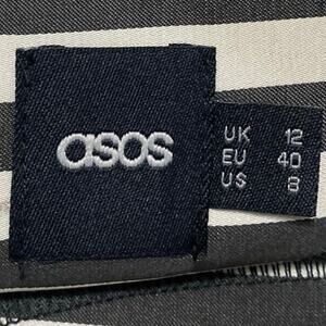 ASOS Women's Black White Striped Satin Short Sleeve Knee Length Shift Dress Size 8