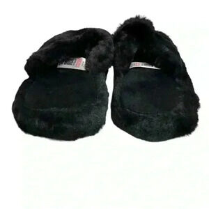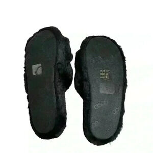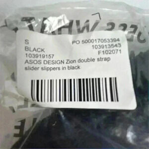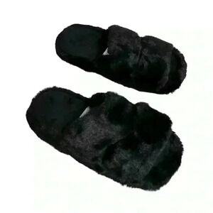 Keywords: ASOS, slide slippers, black, faux fur, women's footwear, casual slippers, open toe, double strap, textured sole, all seasons, new condition.