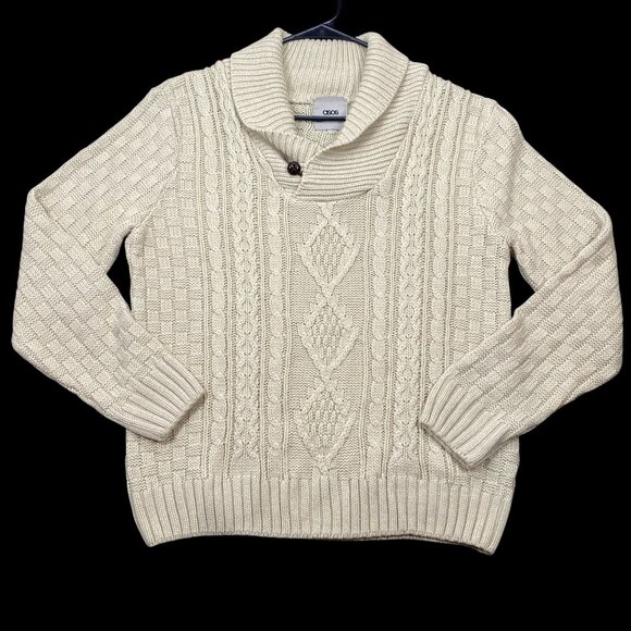 ASOS Womens Cable Knit Sweater Shawl Collar Small Beige Long Sleeve Pullover