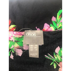 ASOS Women's Black Floral Button Front Shirt Top Blouse Size 2