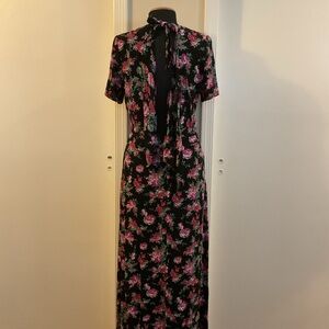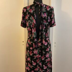 Keywords: ASOS, floral dress, long dress, size 8, multicolor, casual wear, women's fashion, round neck, short sleeve, black and pink, garden party, brunch outfit, pre-owned, elegant, comfortable.