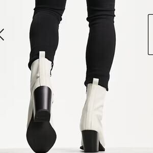 ASOS Women's Leather Angled Heeled Chelsea Ankle Bootie Size 10 White Side Zip