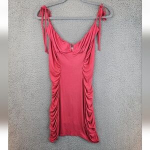 Featuring side ruching and a strap accent, this dress is both stylish and flattering. It is suitable for both formal and casual events, making it a versatile addition to any wardrobe. Whether you're attending a party or enjoying a day out, this pretty pink dress is sure to turn heads. Sz 8=M