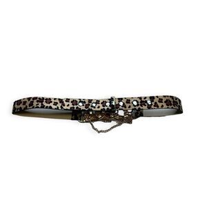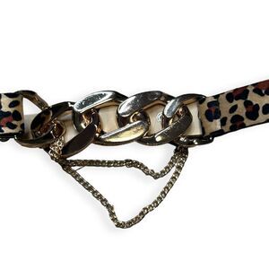 ASOS Women's Multicolor Gold-Tone Chain Animal Print Leather Adjustable Belt OS