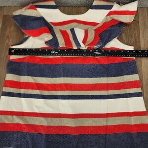 ASOS Womens Size 12 Bold Striped Patriotic V-Back Ruffle Accent Mini Shift Dress
