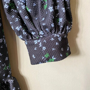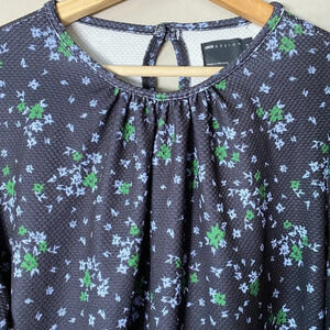 ASOS Women's Sz 10 Tall Balloon Sleeve Floral Print Ruffle Shift Mini Dress Navy