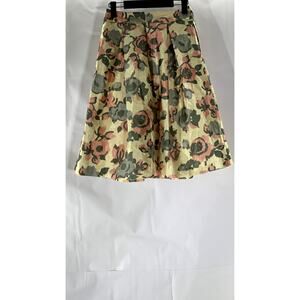 ASOS Women's Tan-Gray Floral Pleated A-Line Knee Length Skirt SZ 2