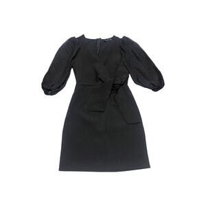 ASOS Wrap Front Mini Dress Textured Puff Sleeve Black Womens 2 Swiss Dot Bow Tie