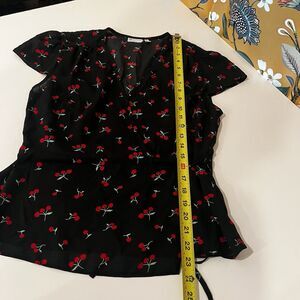 ASOS Wrap Thru Blouse Cherry Print US 10 Short Sleeve Pinup Girl Festival School