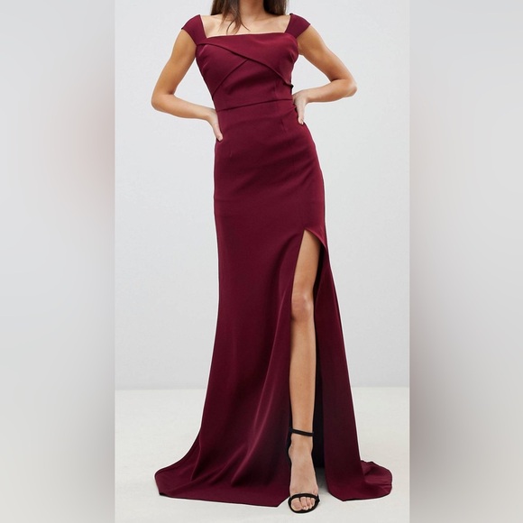 ASOS Yaura Thigh Split Maroon Evening Maxi Dress Gown Size 8