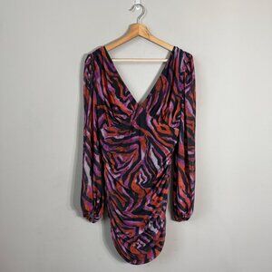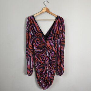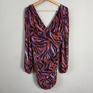 ASOS Zebra Print Plunge Long Sleeve Mini Dress Women's 10 Going Out Party Ruched