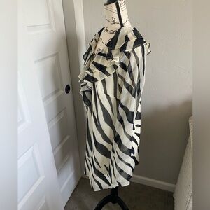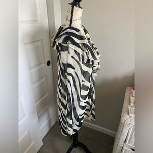 ASOS zebra print mini dress with exaggerated ruffle and lace-up neckline. Long sleeves. Fully lined, except for sleeves. 100% polyester. Great condition!