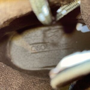 Women’s ASOS army green with gold accent, suede leather boots gently used condition