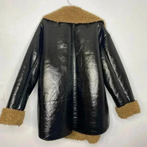 ASOS black faux leather bonded shearling shacket