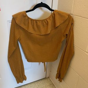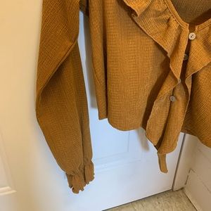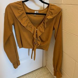 ASOS light brown / tan long sleeve blouse in a size 4. Only worn once, in perfect condition, light comfortable material. Fabric ties at the bottom on the front.