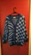 ASOS design button up cardigan in checkerboard and tiger print. Navy and sky blue. No pockets. Great Slightly used condition. US size 4. Loose oversized fit. super cute over a slip dress with Dr. Martens.