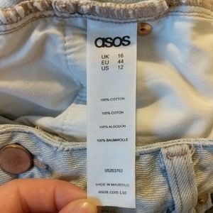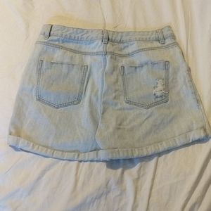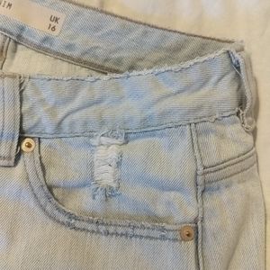 Light-wash, distressed denim shorts with cuffs. High-waisted fit. No problems, gently worn but has a distressed style as shown in the pics.