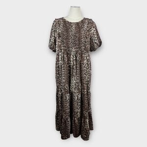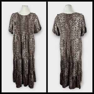 ASOS design Women's 16 Leopard Print Tiered Maxi Maternity Smocked Front Dress