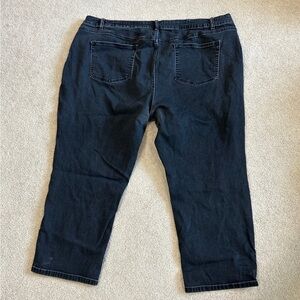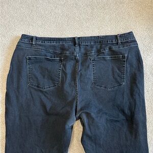 ASOS design black straight leg curve curvy jeans in plus size 24. In good used condition but has one pucker mark and some piling in the crotch.