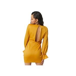 ASOS design petite deep wrap plunge mini dress with flutter sleeve in mustard 2