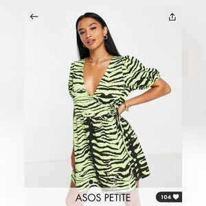 ASOS design petite short sleeve smock dress in lime green and zebra print